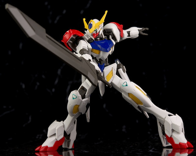 Set contents: Buster sword, long rifle, twin mace, 200mm arm gun, Tekkadan mobile worker. The white parts on the gauntlets are stickers.