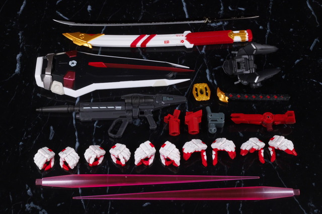 Like “METAL BUILD Gundam Astray GOLD FRAME AMATSU Mina -Declaration of the Sky-“, electrolytic plating is used for the die-cast parts, and polycarbonate material is used for the white armor.