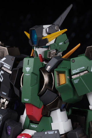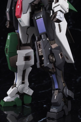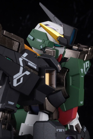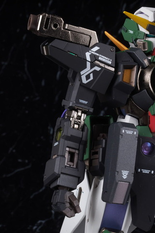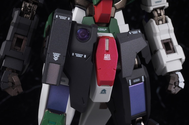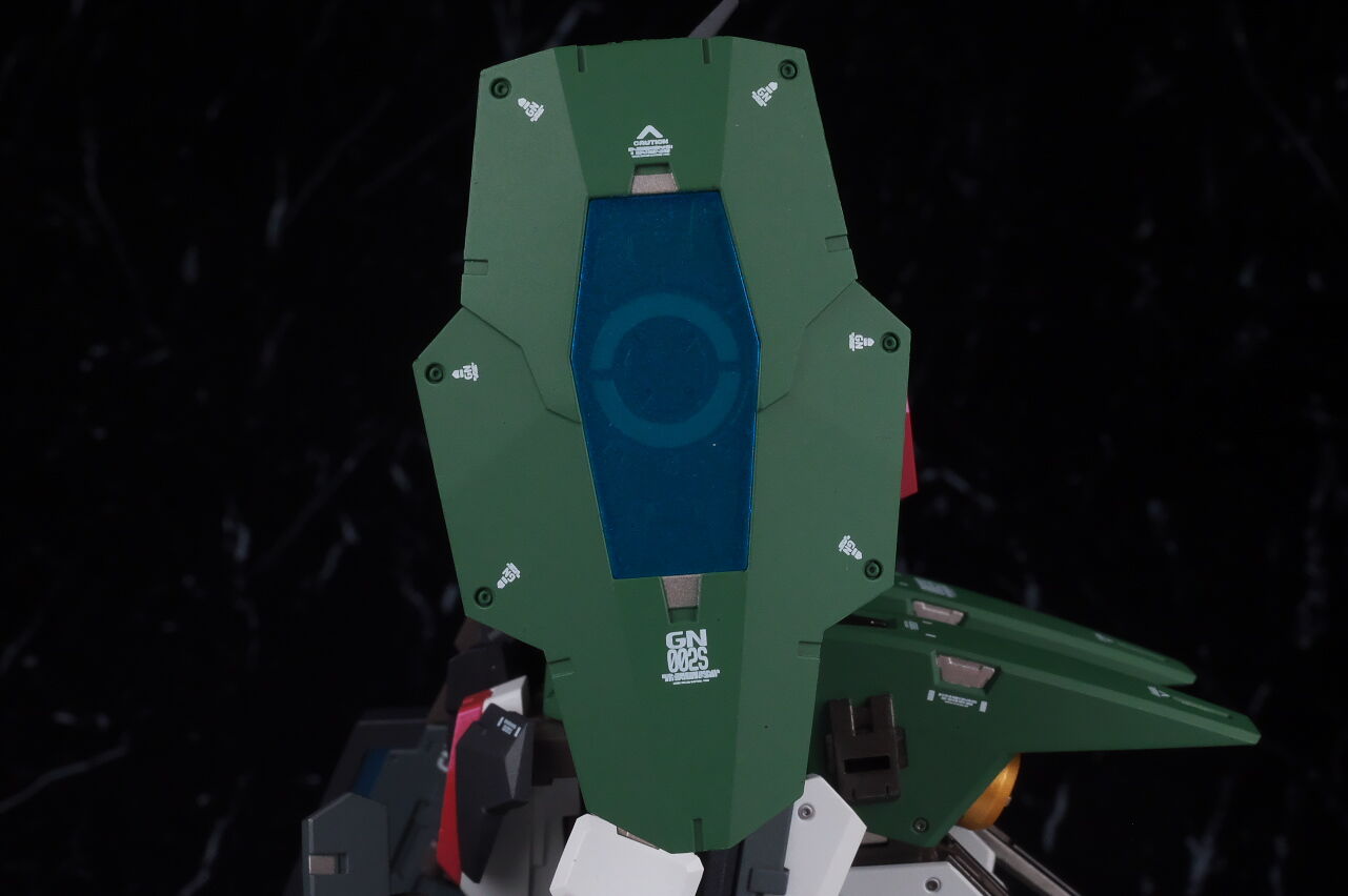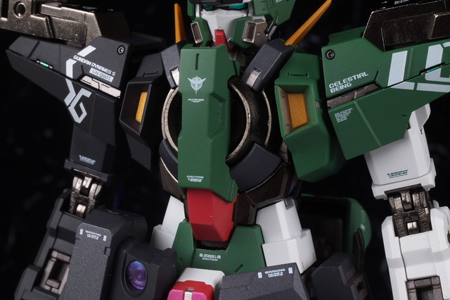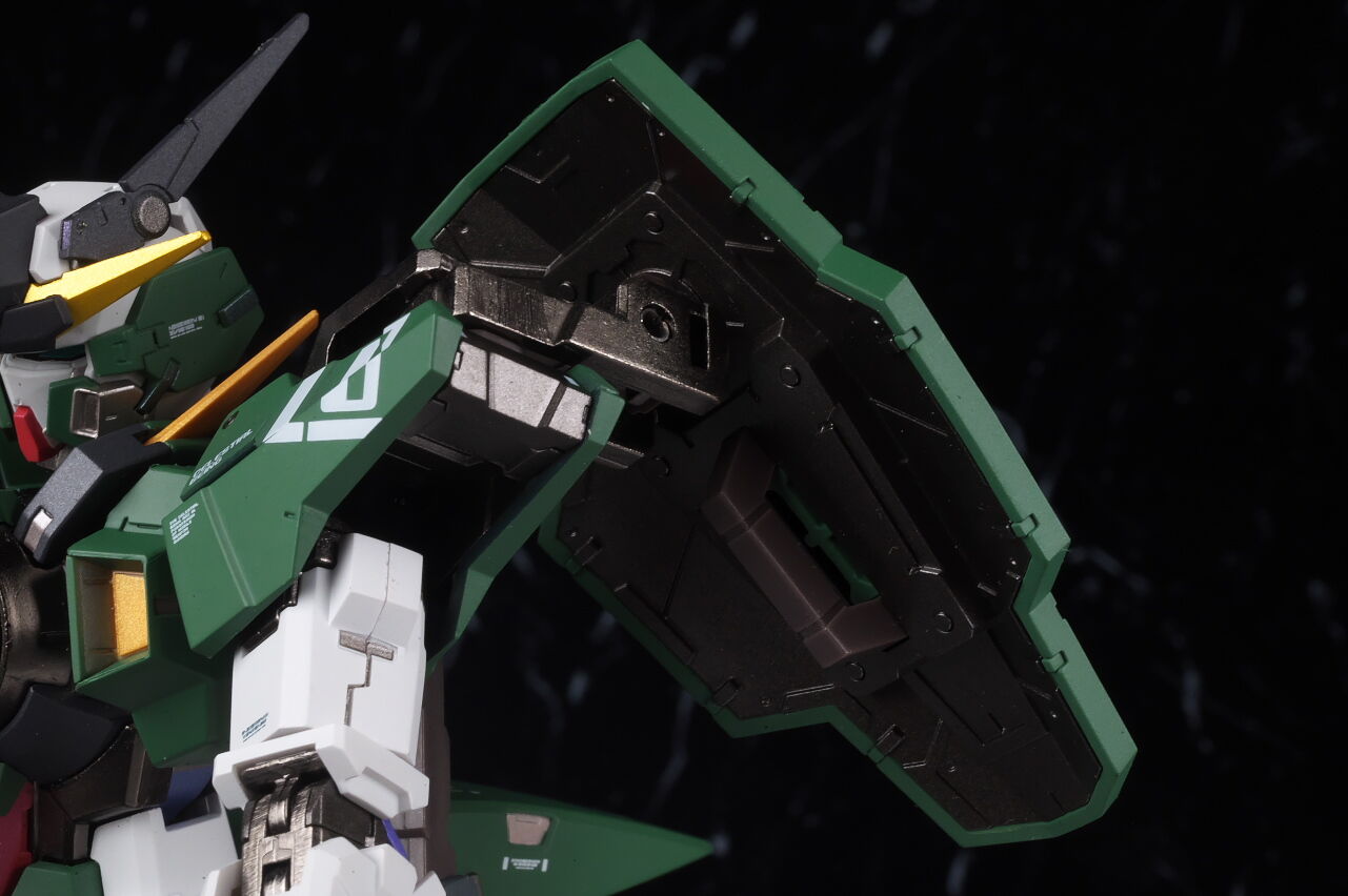 The markings on the shoulders are asymmetrical, and like other Dynames, the front bottom of the shoulder armor can be opened.