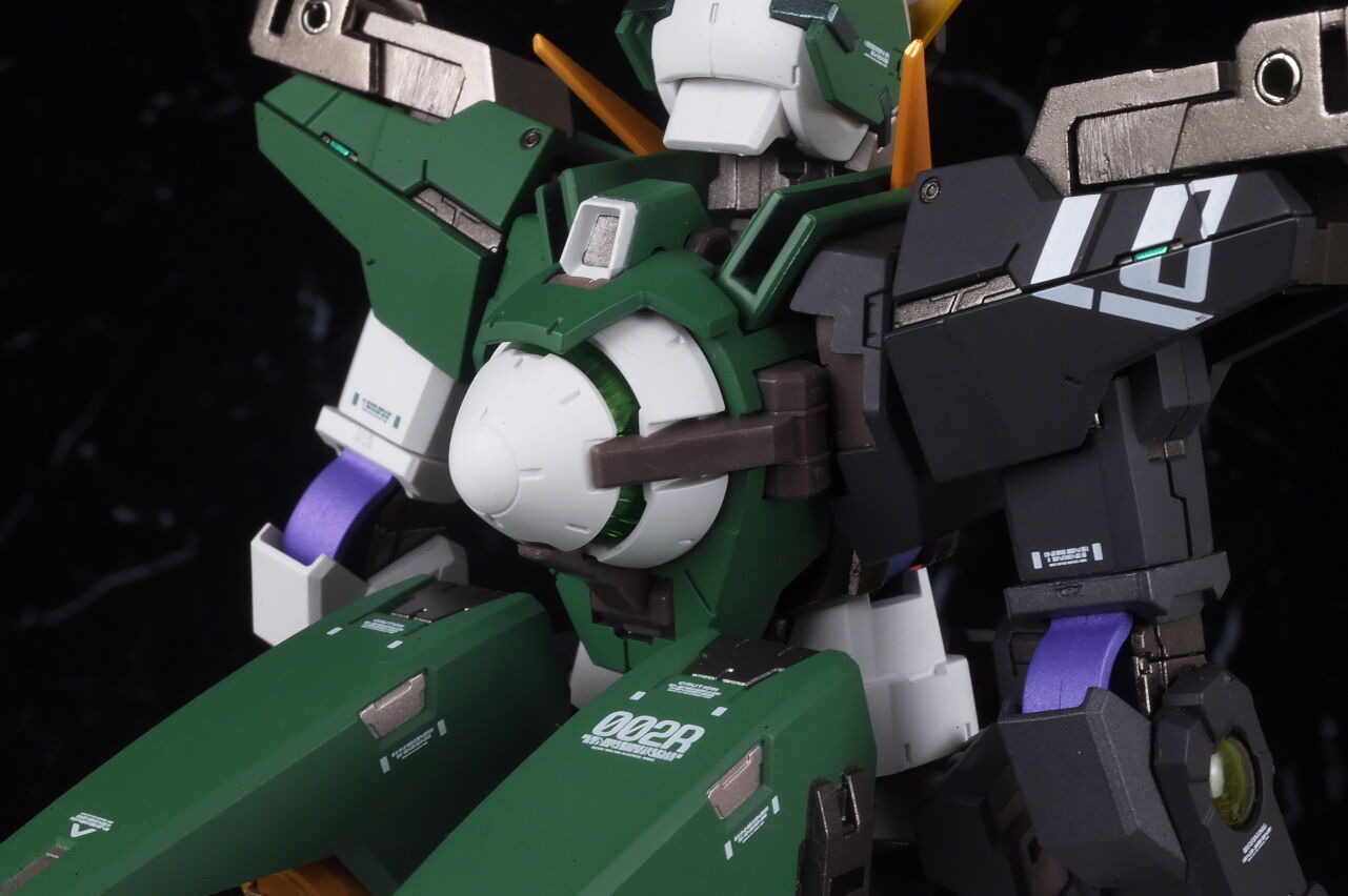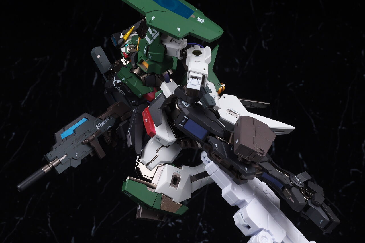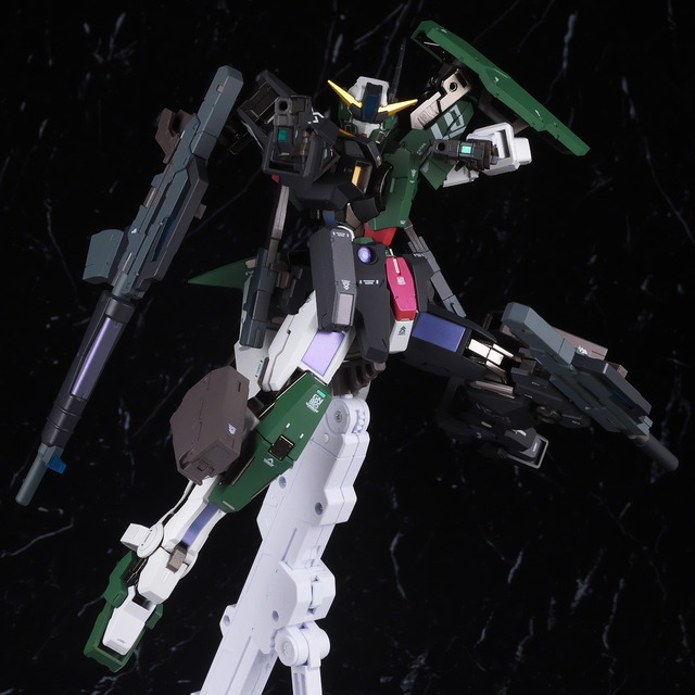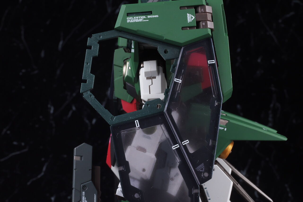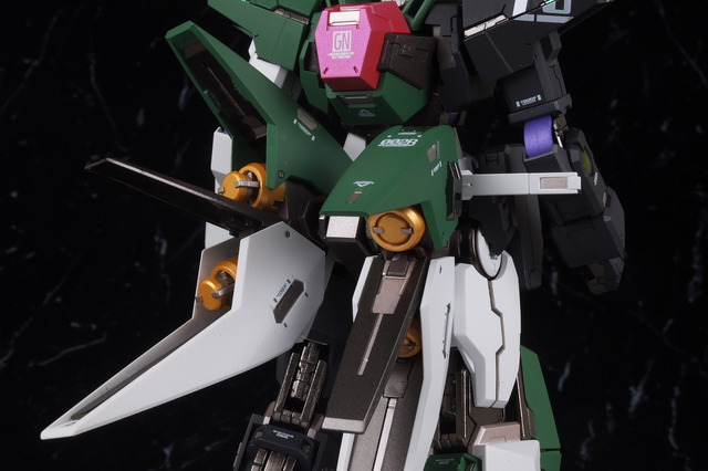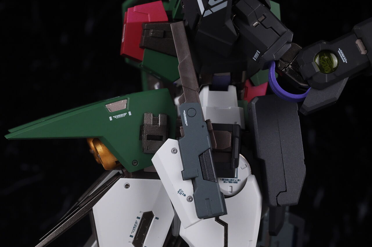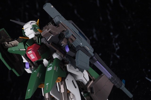Although it doesn’t stand out much when fully equipped, the coloring is quite unusual, so it looks like it’s a love-it-or-hate-it look for some people, but the design of the Dynames body with the Cherudim Saga head and weapons seems to fit quite well, and combined with the excellent modeling and painting that is typical of Metal Build, it looks pretty cool.