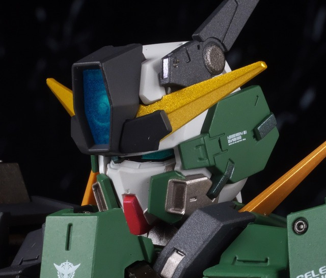 Face. Since this is a unit connected to the Cherudim Saga, the head has a similar design to that. It has unique features such as a large gun camera on the forehead and an antenna on the left side of the head, which are different from the Dynames.