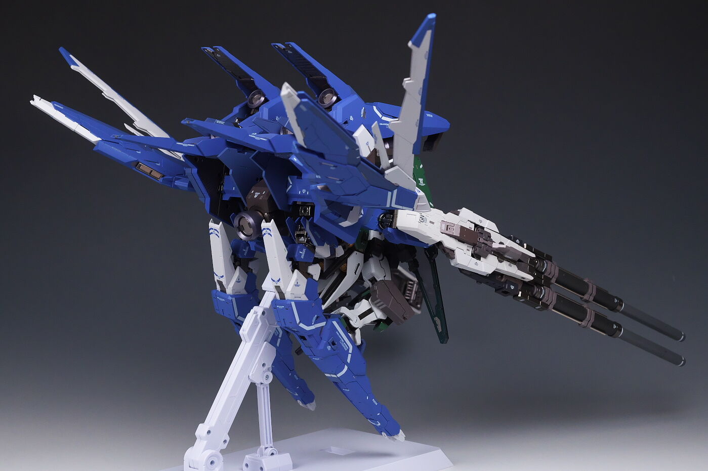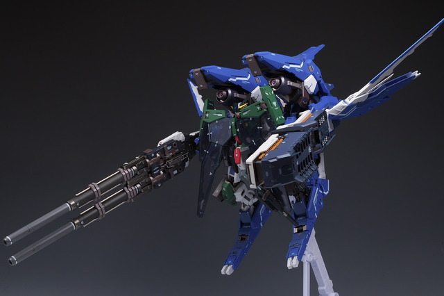 The gimmick remains the same, with the base being slightly movable up and down and left and right, and the verniers deploy when the cover is opened up and down. The back side is equipped with a beam saber, which can be removed from the side.