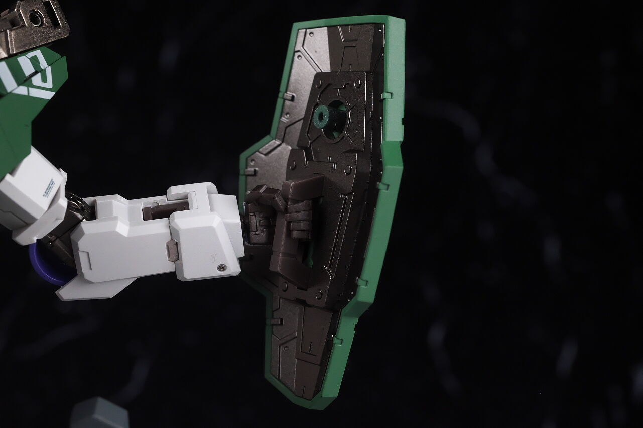 Next is the shield equipped for repair replacement. Although the shape is different, it is a large shield similar to the GN full shield of the Dynames, and its armor is made of clear parts.