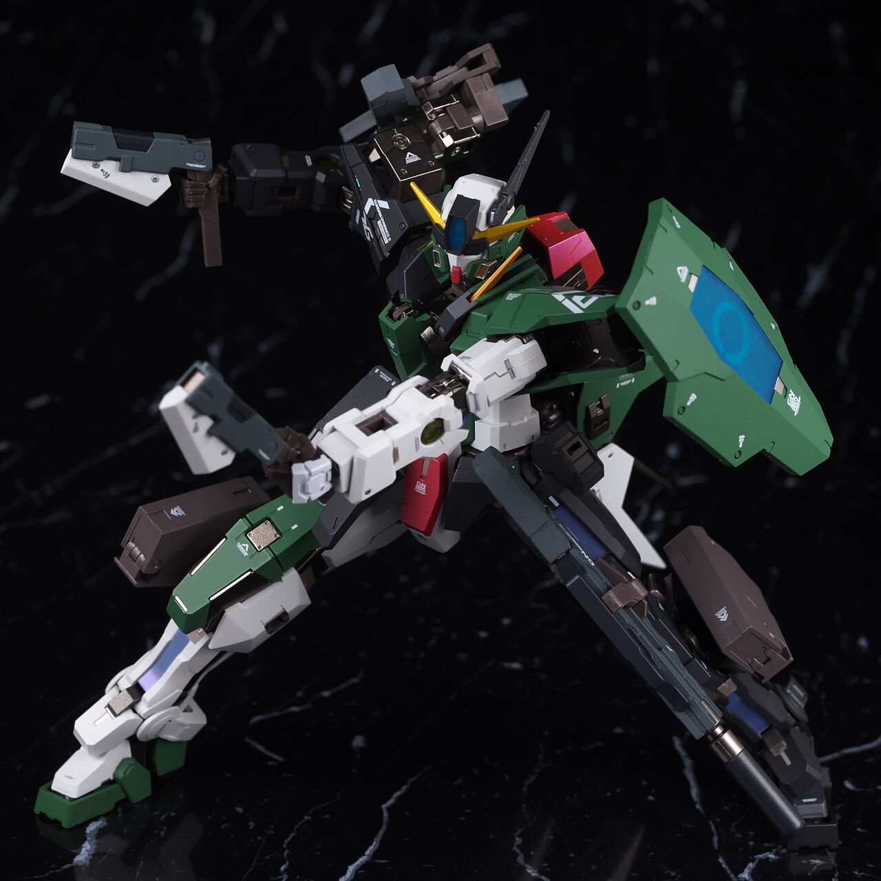 It fires a GN submachine gun while holding a GN small shield. Most of the joints and shapes are the same, so the movement is almost the same as Dynames and Repair 3.