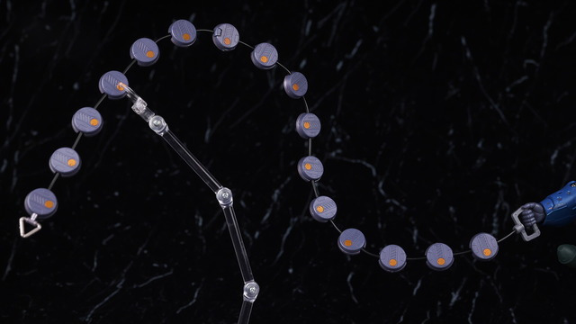 The back, rear armor, and calf armor can be deployed, the vernier can be extended and retracted, and the base of the vernier can be moved up and down.