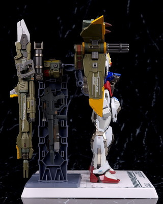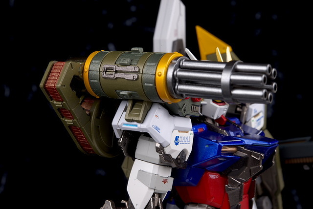 Only the Gatling gun remains on the right shoulder. A cover to hide the hole where the shield was inserted is also included.