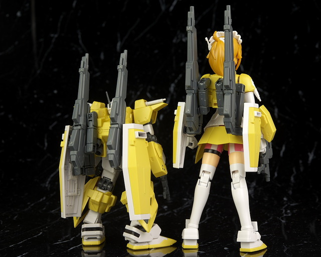 Back. The backpack is equipped with a large rifle and a shield. Some parts are borrowed from the GM Cardigan.