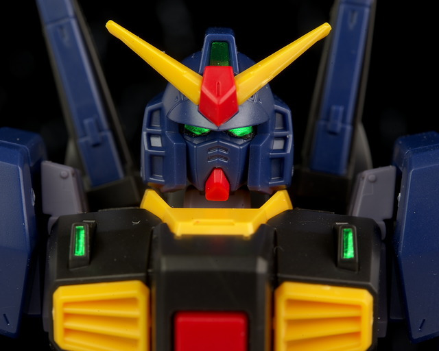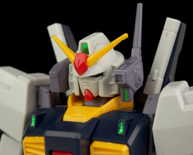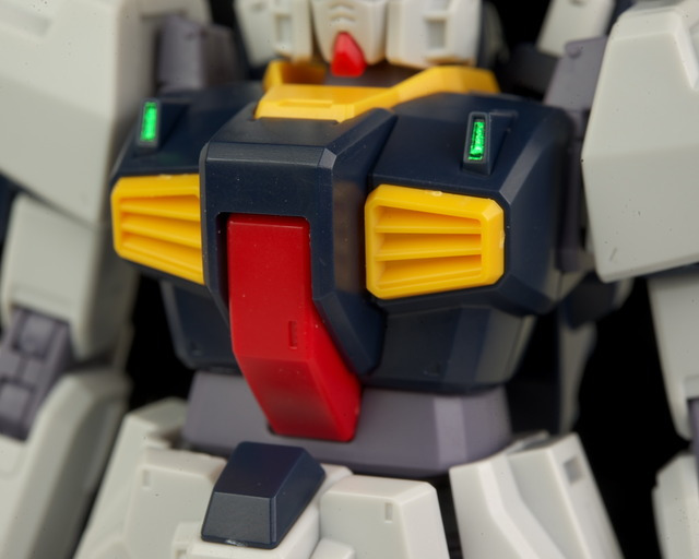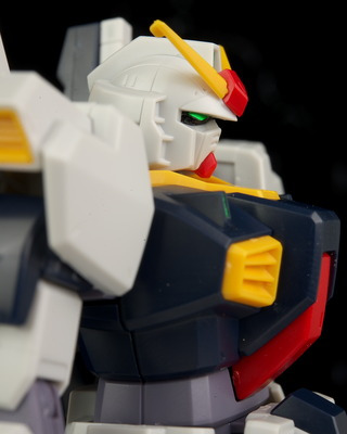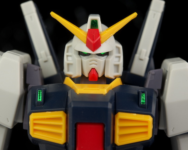Face. The silhouette, eyes, mask, etc. are balanced close to the RX78. Since it’s HG, there are no color-coded ducts.
