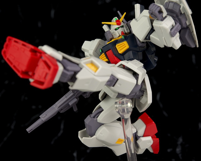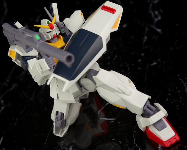 Even with the Vulcan pod removed, the shoulders were quite raised. The ground contact was average, just like the RX78.