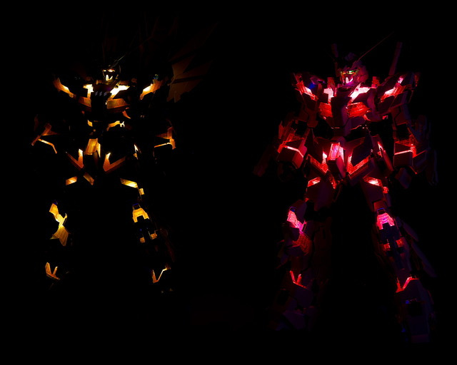 Turn down the lights. The Unicorn is flashier in terms of the Psychoframe and exterior colors. But the Banshee has a more refined feel to it.
