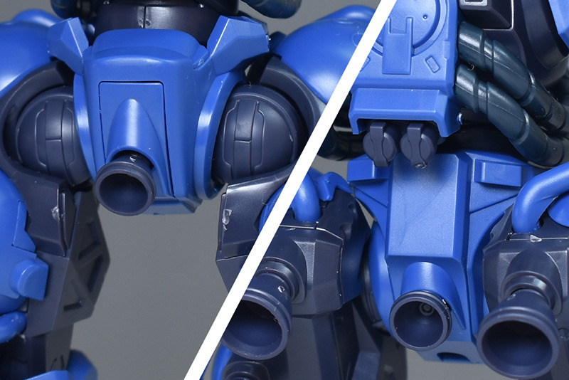The structure itself is not much different from the HGUC and Origin Zaku, but the parts are arranged in a way that there are no seams between them.