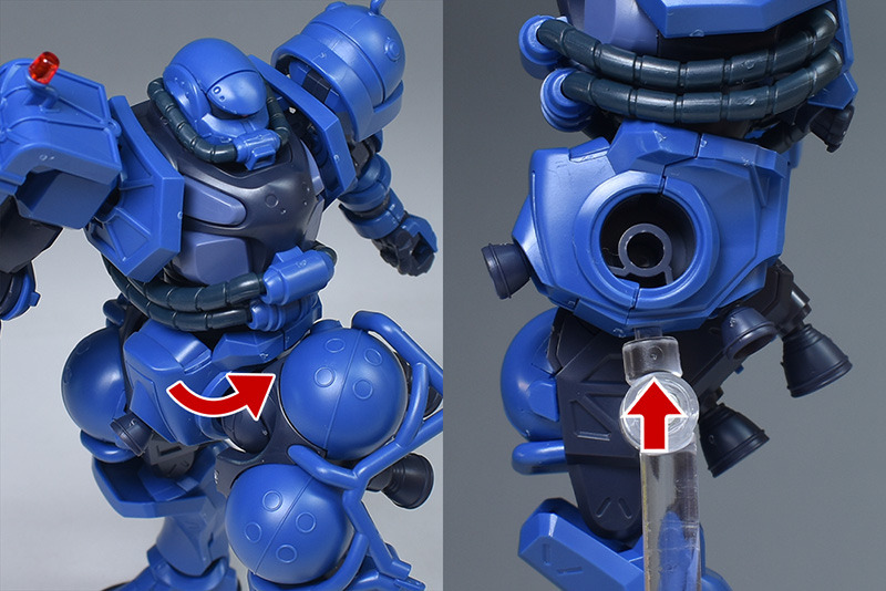 The waist can be rotated 360 degrees without interference, and when connected to an action base or stand, it can be displayed by inserting a 3.0mm shaft into the crotch area as usual.