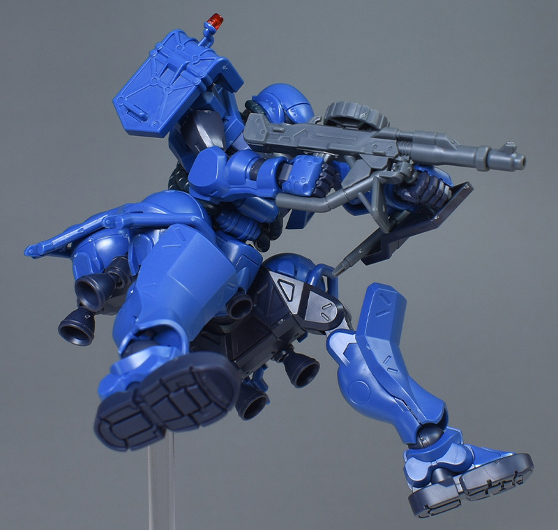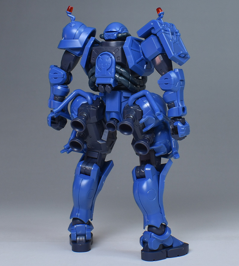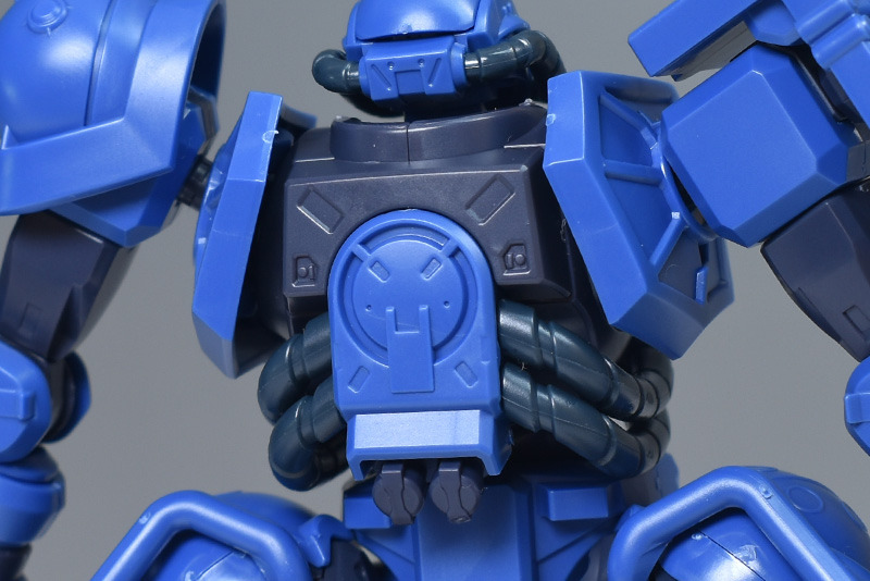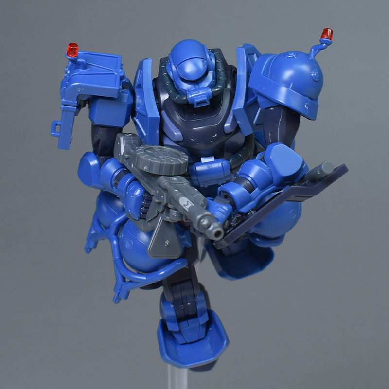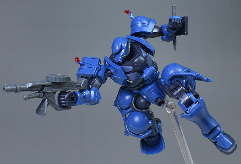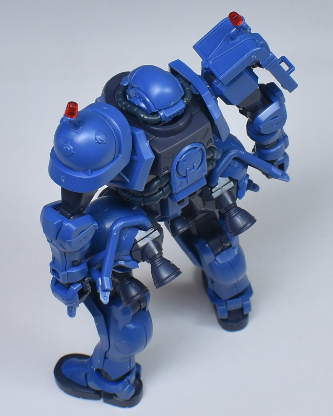 The molding color is based on blue, with dark blue on various parts, purple-gray on the chest, and clear red on the shoulder patrol lights.