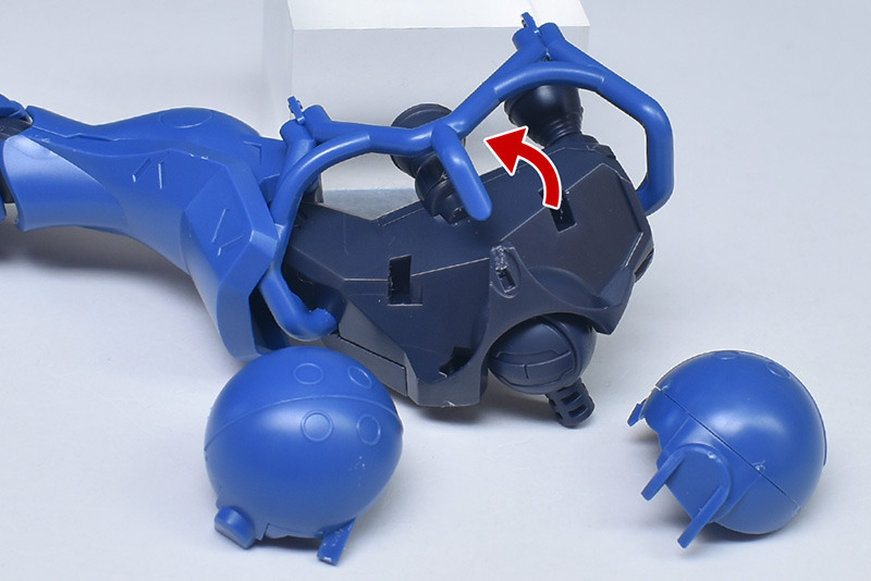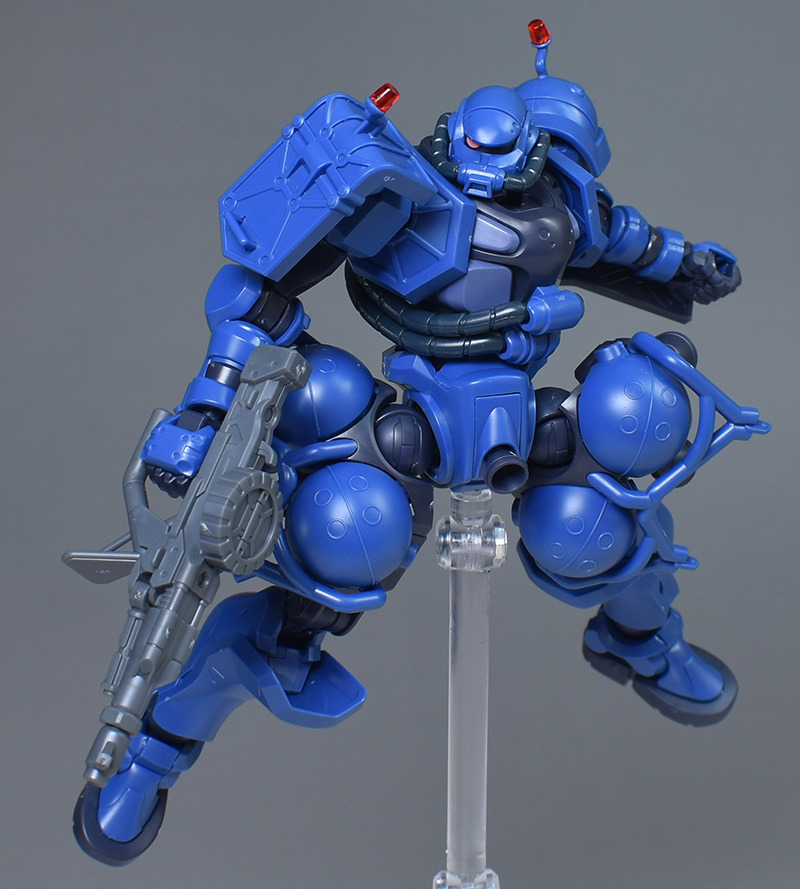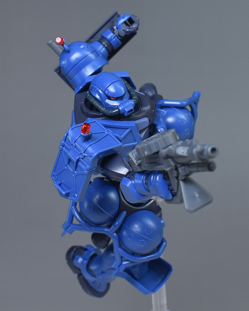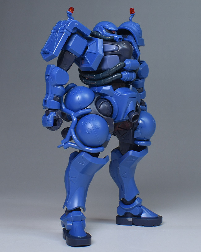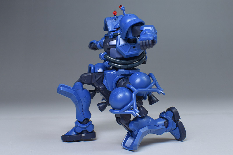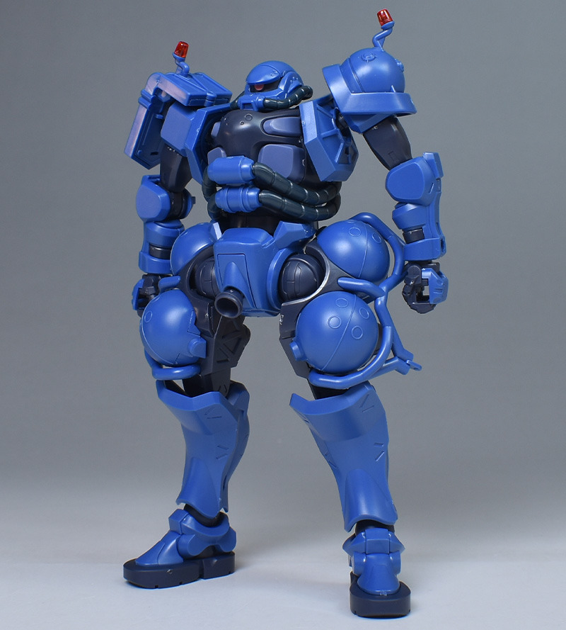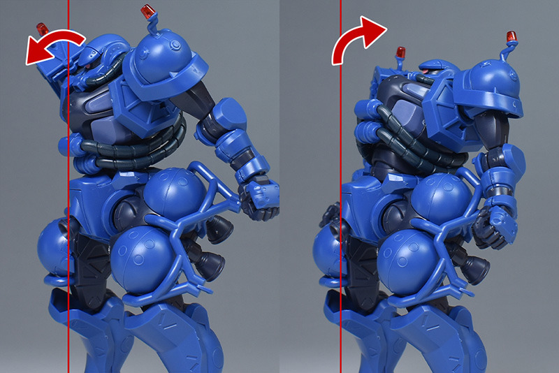 While following the design of the 1st Zaku, the characteristic body shape unique to the GQuuuuuuX version of Zaku, with spherical armor in various parts, is reproduced with new molding.