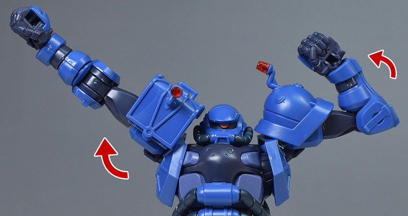 The Zaku machine gun’s foregrip can move back and forth, and the arms and shoulders are flexible, so it’s easy to hold with both hands.