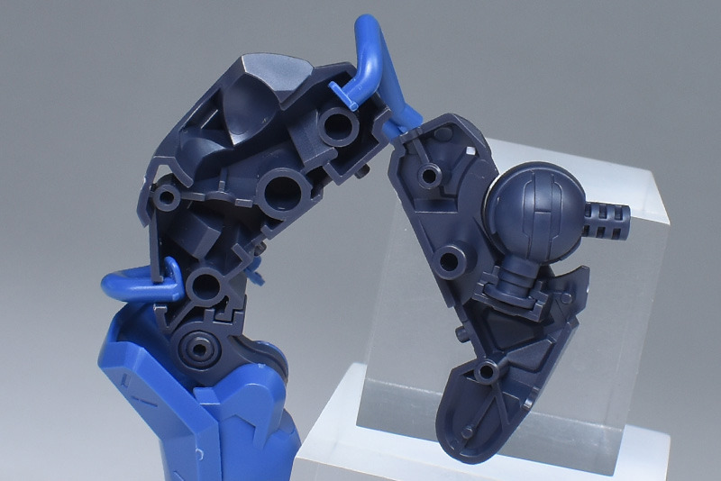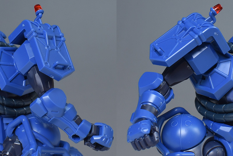 Right arm. It has a similar feel to the 1st Zaku, but since it’s a military and police Zaku, it’s equipped with a patrol lamp on the upper shoulder.