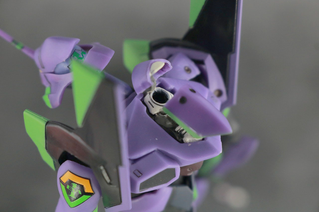 The arm also has the words “EVANGELION TEST-TYPE” engraved on it. This detail is very well reproduced.
