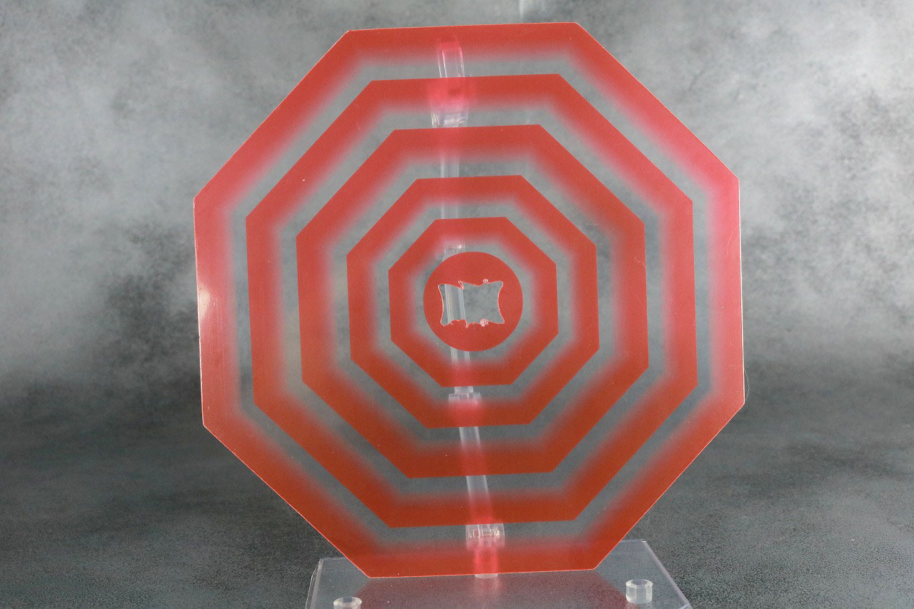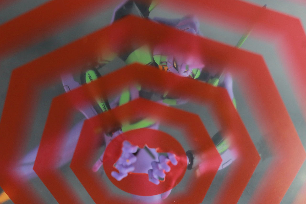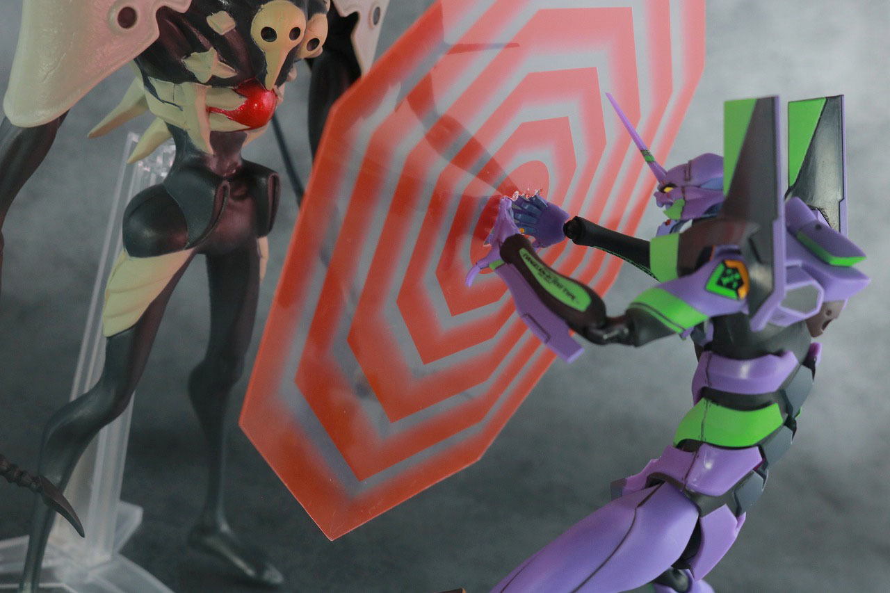 It also comes with a PET sheet of the AT field, with a hole in the center so you can recreate the scene of Unit 01 trying to break through.