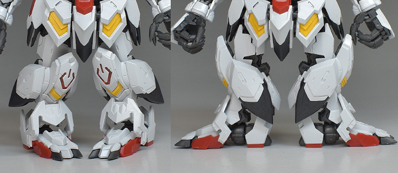 ちょっとわかりにくいですが、膝は装甲が干渉するまで深く曲げることができます。膝装甲裏は裏打ちパーツがきっちりと造形。