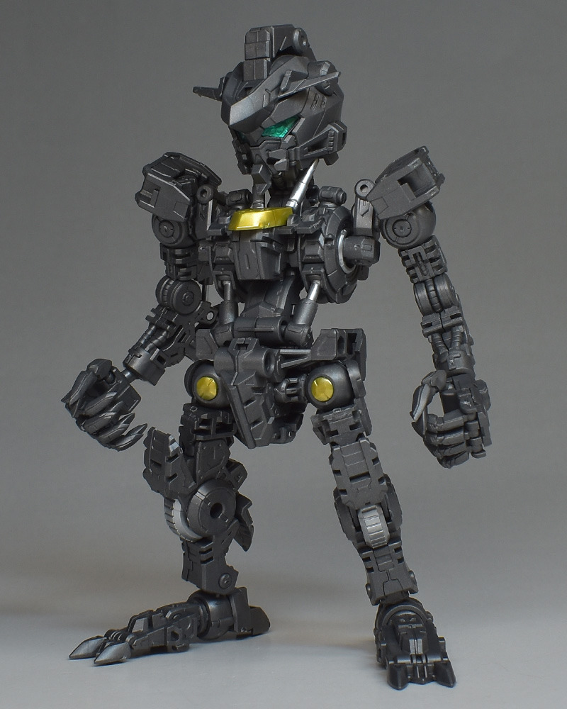Full body view of the Gundam frame. It is small and short. Most of the frame is made of KPS parts, so it is quite lightweight.