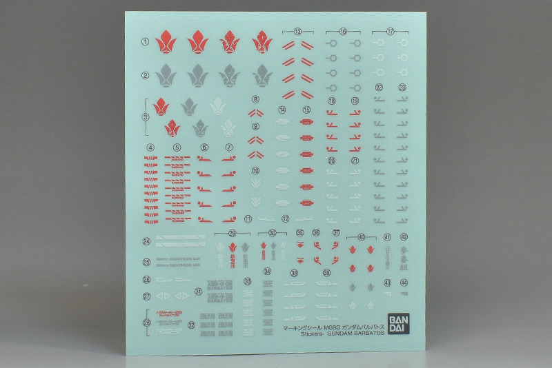 Dedicated marking stickers are included. The model number and Tekkadan emblem are included. There are many Tekkadan emblems.