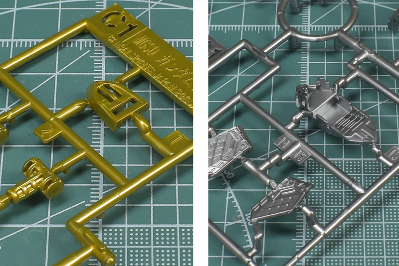 KPS is used for the dark gray molded parts such as the Gundam frame and weapons. ABS is not used.