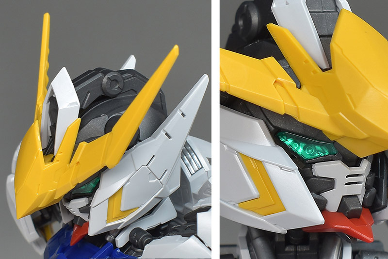 The twin eyes are made up of a double layer of silver and clear green parts. Because they are deformed, the pupils are just the right size to make it easy to see inside. Inside, the sensors are mechanically sculpted. The clear green parts are small, so be careful not to lose them when processing the gate.