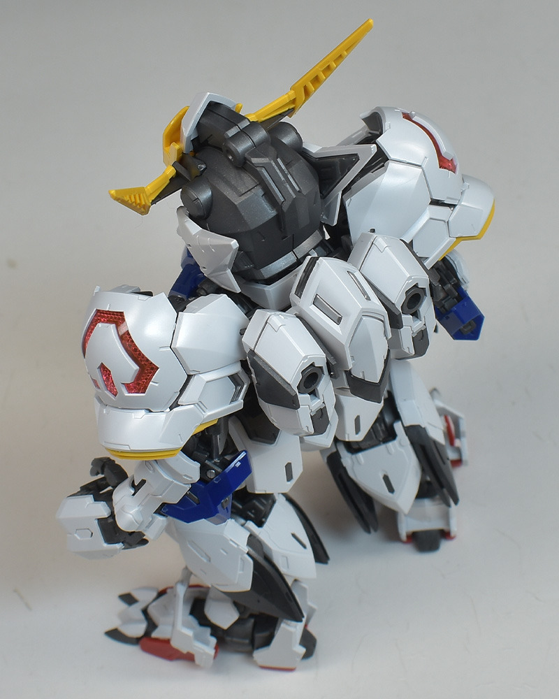 There are few points that bother me. The only points that bother me are the holes behind the antennas and the hinges on the backpacks, which are a little easy to detach. The original gimmicks such as the shoulder armor and the mace also add another level of quality to the Barbados.