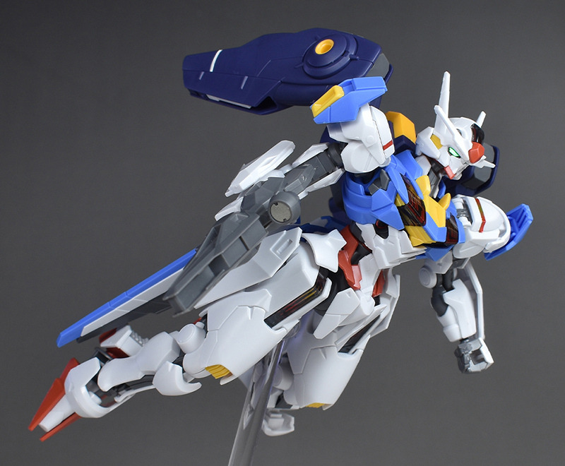 To attach to the HG Gundam Aerial, remove the Aerial’s backpack and attach it.