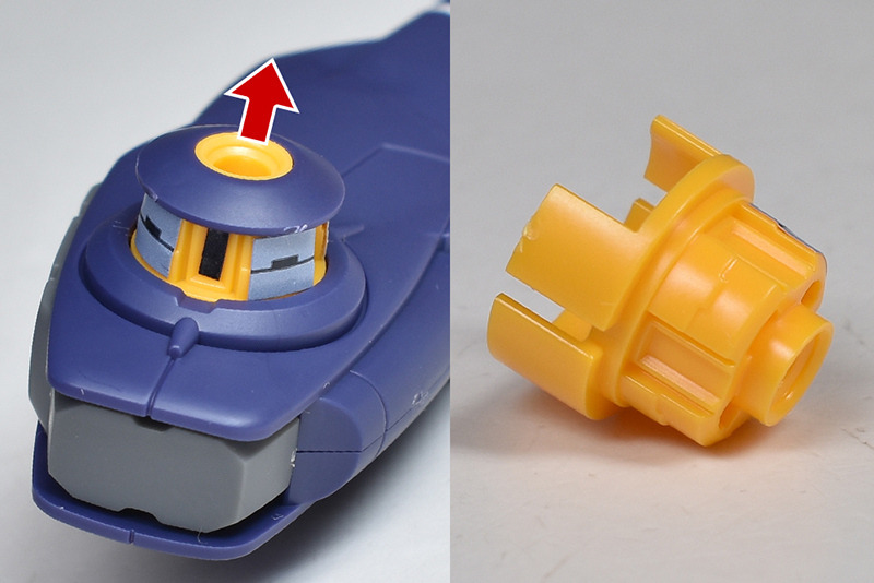 The thruster parts on the side of the unit can be pulled out. There is a gap to hook your claws, so you can pull it out easily. There is no rotation gimmick like in the movie. Gray and black stickers are attached to the inside, but since the same mold is sculpted, there should be no problem if you paint it.