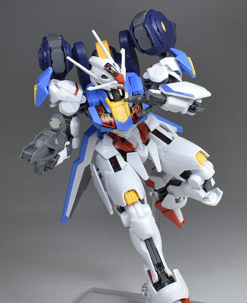 Attach the Mirasoul flight unit to the HG Gundam Aerial. Just attaching the Gambit to the whole body gives it a heavy feel, but by attaching the flight unit, it becomes an even more heavy-duty Gundam Aerial.