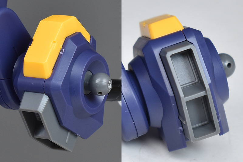The arms are split into two parts, so there is a seam at the top. The seam at the bottom is molded with a step-down pattern. The seam seems a bit wasteful, but the molding color is dark and not very noticeable, so it doesn’t seem like you need to worry too much about it. Be careful about the orientation when assembling.