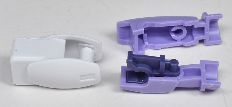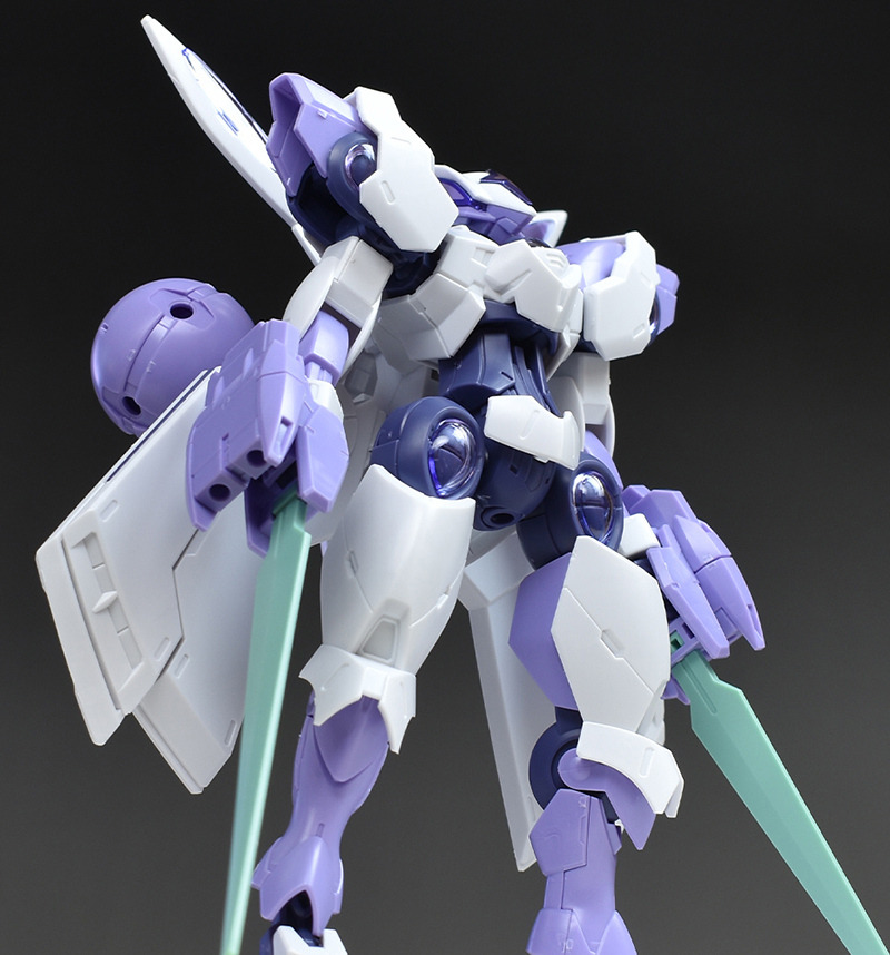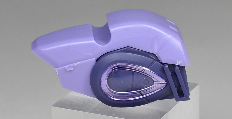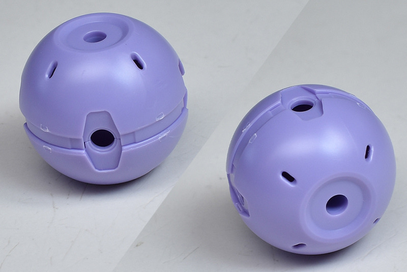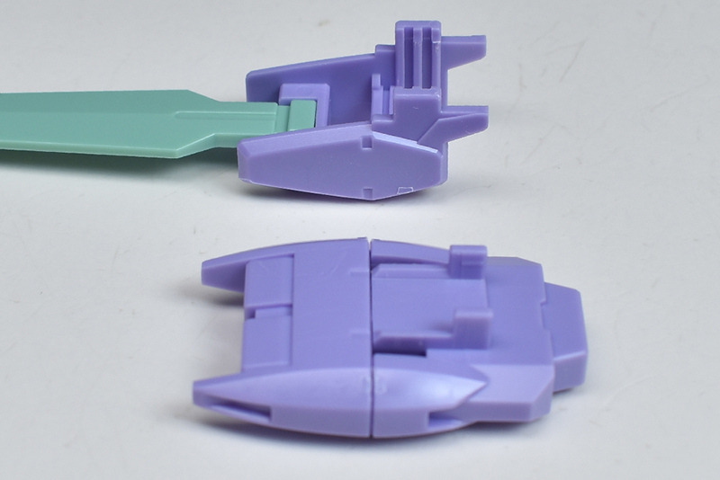 The molding color is white with purple accents on the limbs, back, etc. The oval molds on the head and other parts are clear purple, and the blade of the bayonet is light green.