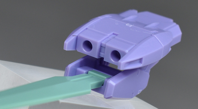 The beam gun unit has two gun muzzles at the tip. The main body is made up of two parts, one in front and one in back, but the center seam is molded with a step-down .
