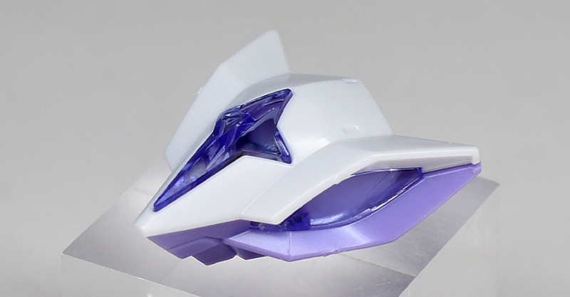 Chest and abdomen. Although it is slender and not flashy, the white armor is mechanically sculpted. The dome-shaped clear part in the center of the chest is impressive. The white exterior parts and abdomen are combined front and back, but the seams on the sides are molded in a stepped pattern.