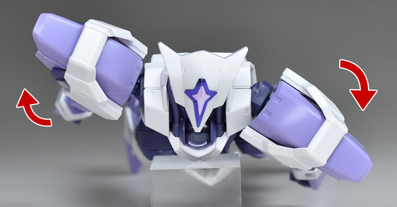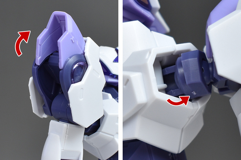 The shoulder armor can move up and down. The shoulders are also movable and can be pulled out.