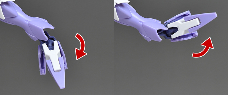 The bayonet can be firmly attached to the hand parts and forearms, making it easy to recreate poses such as firing the beam gun or slicing with the physical sword.