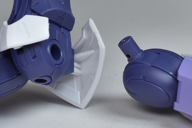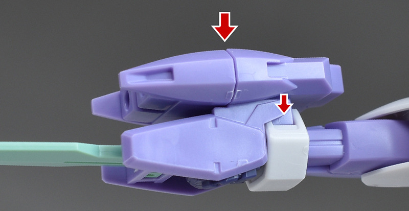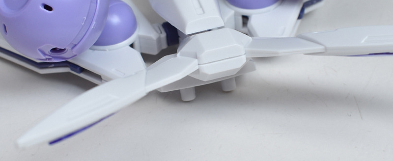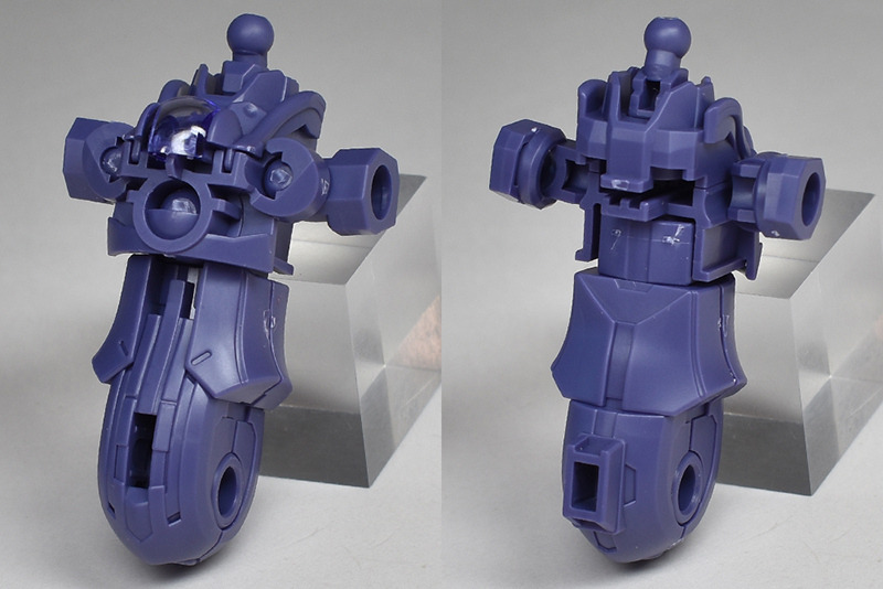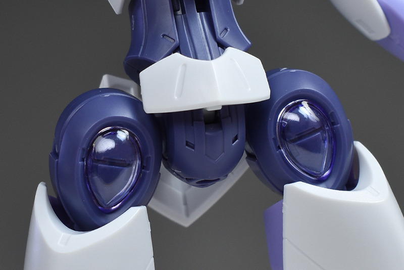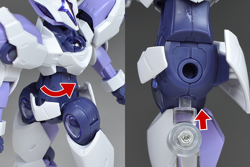 The waist is lightly armored. It is equipped with simple white front and rear armor. The oval mold at the base of the legs is recreated by attaching a ring-shaped sticker and then covering it with clear parts.