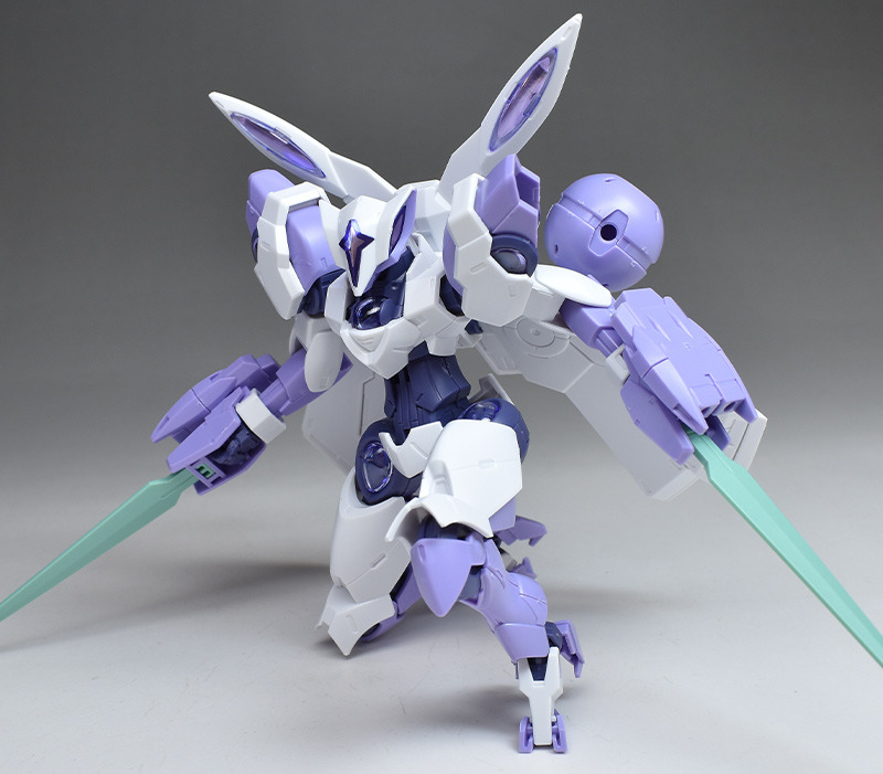 Stickers are used to cover the oval molds on the head and various parts, as well as parts of the flight unit on the back, but there aren’t many. The molds on various parts of the body, such as the ducts on the flight unit on the back, need to be painted black, but even with the bare assemble the model has a fairly good color scheme.