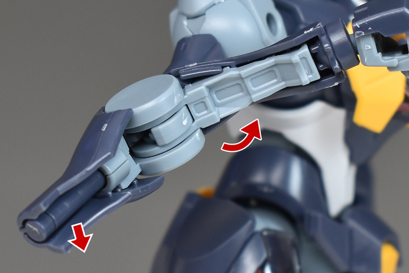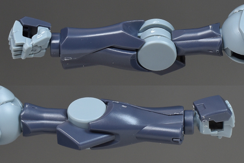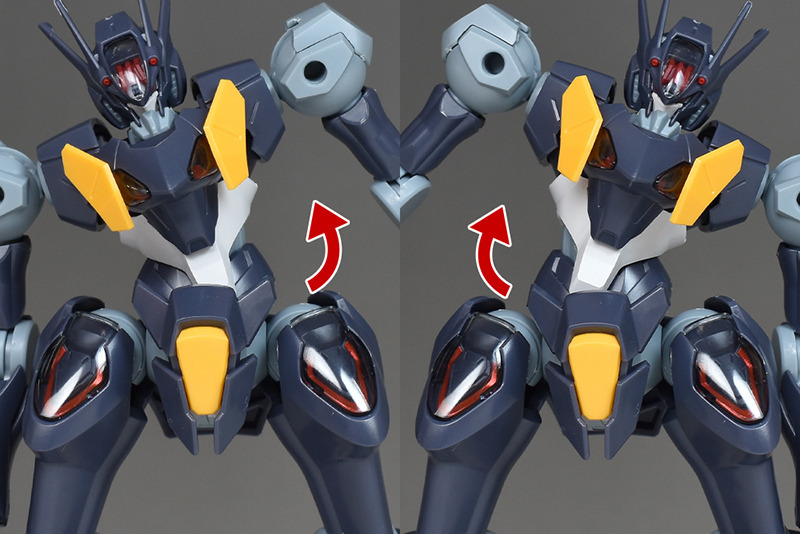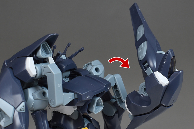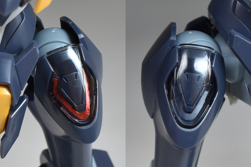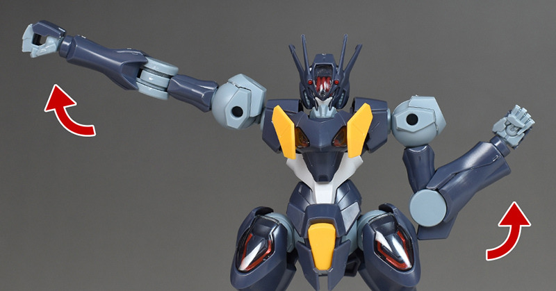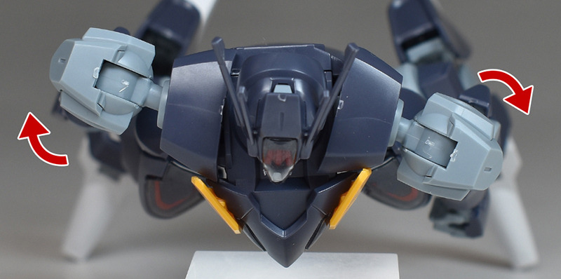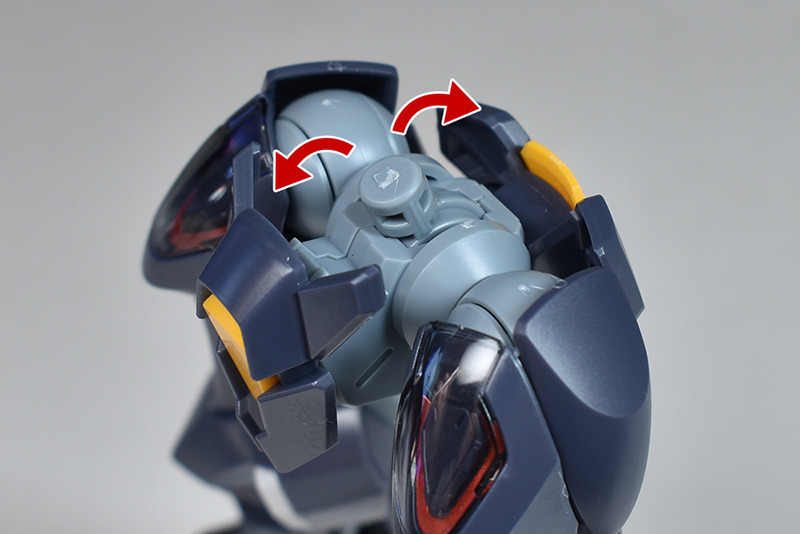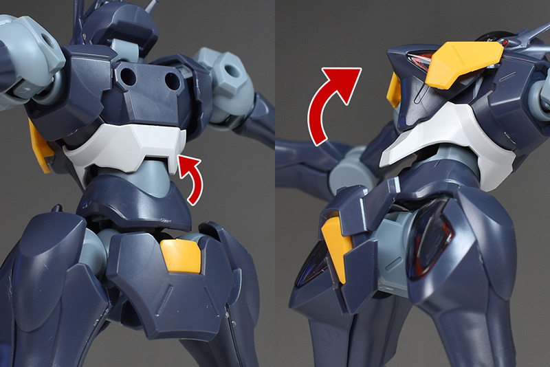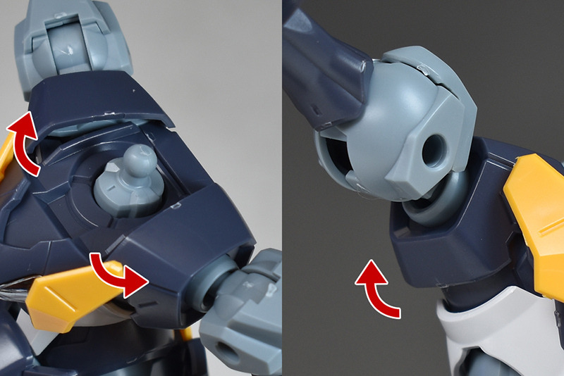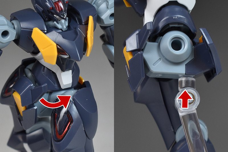 The shoulders are slightly different from the other HG Mercury Witch series in that the ball joints are attached downwards, allowing for flexible forward and backward swings, but vertical movement is somewhat limited.