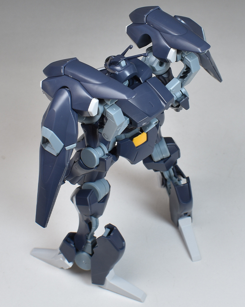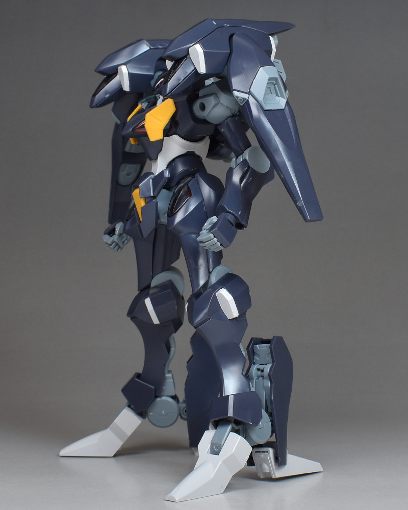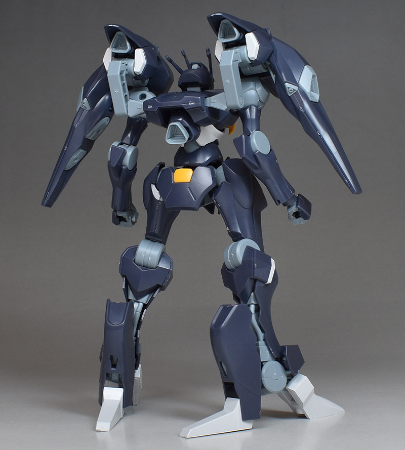 機体形状はヒール調ですが、機体デザインか成型色の関係からか、割りと上品さも併せ持っているなという印象。見れば見るほどかっこよさが強く感じられるようになっていきます。背面のバックブースターにも存在感がありますね。