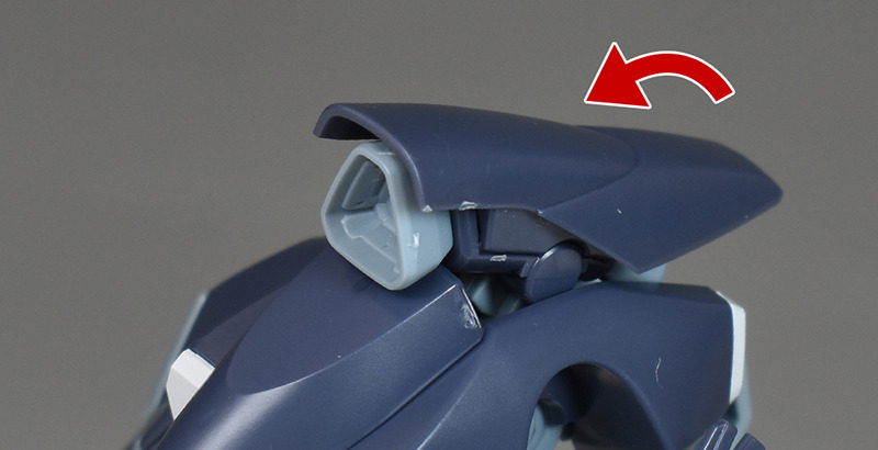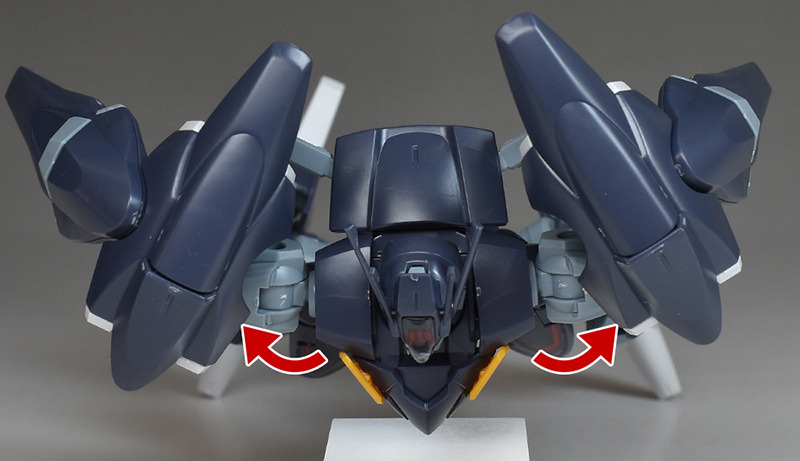 内部の可動ギミックによって上部装甲が展開。内部のスラスターが露出します。内部スラスターは前後とも別パーツによる色分けを再現。