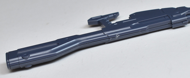 ロングサイズの武装ですが、本体は左右の組み合わせで構造自体は簡易的。ですが上下の合わせ目は段落ちモールド化されるなど抜かりはありません。