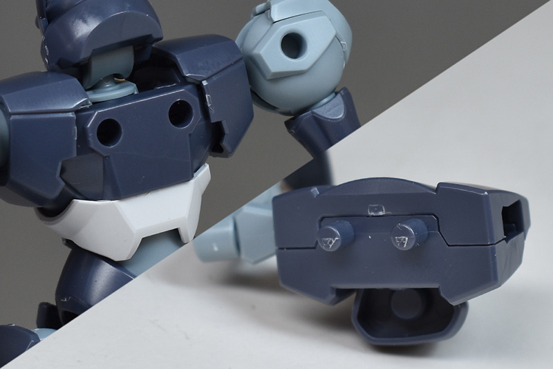 The back of the waist armor has a frame-shaped hole in the rear armor. The front armor does not have any molding. The front armor is connected with a hinge and moves up and down slightly.