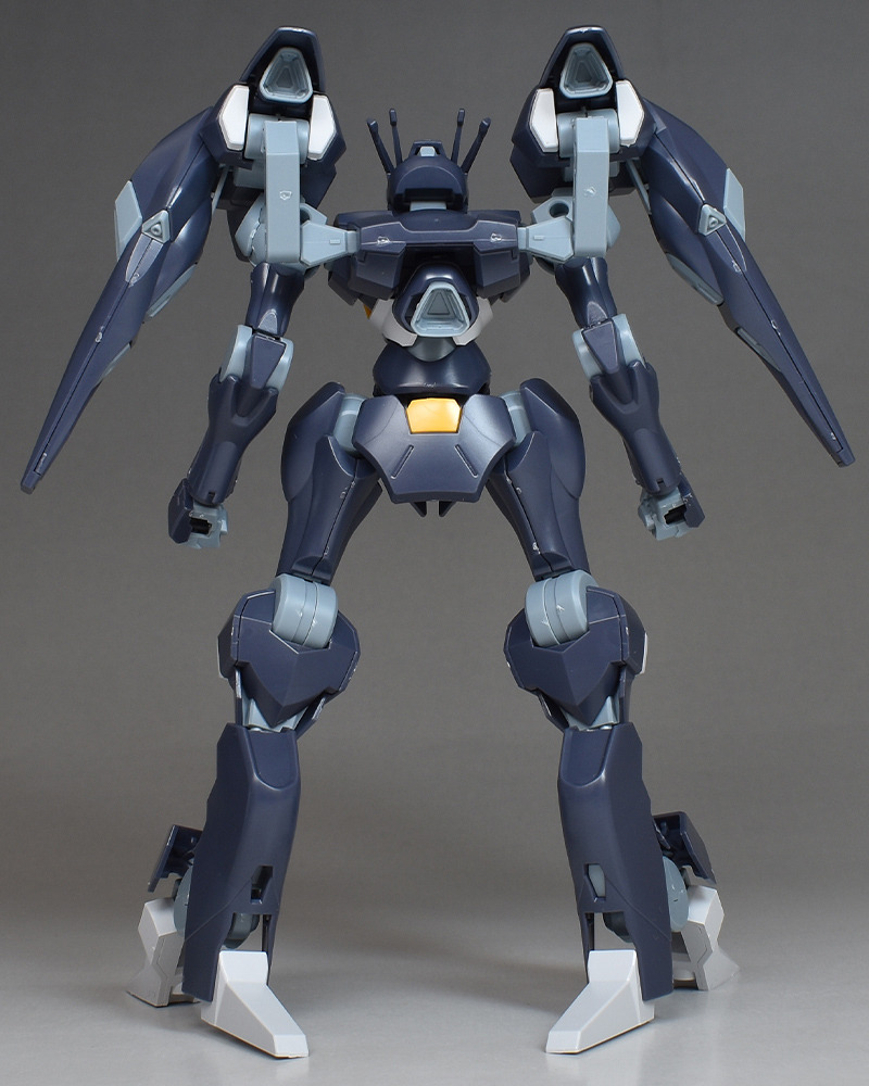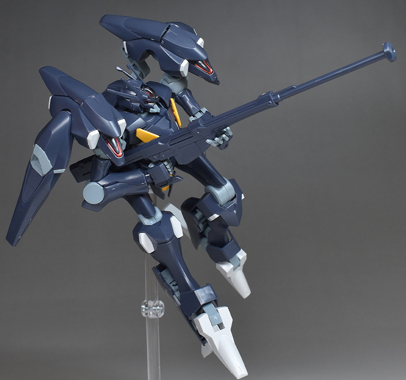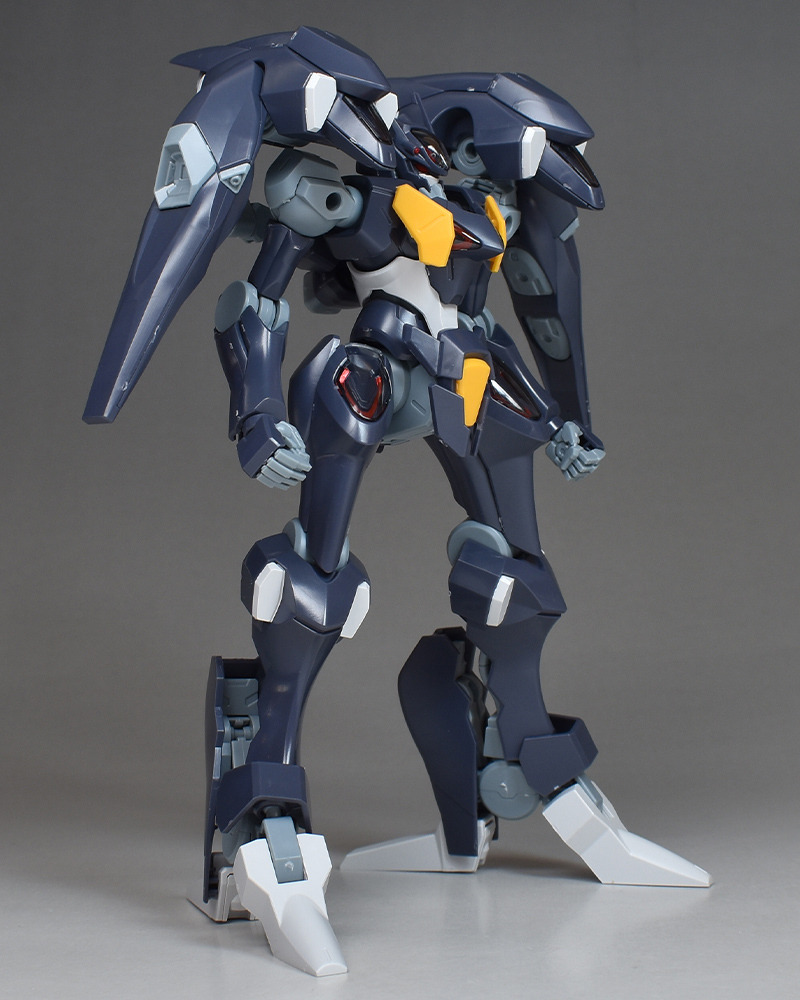 It reproduces its distinctive equipment, such as its slender body shape which prioritizes space combat, the back boosters on both shoulders, the “Koraki” gambit stored in the back boosters, the “Beakfoot” foot unit reminiscent of a bird’s beak, and the “Beam Arquebus” portable firearm for sniping.
