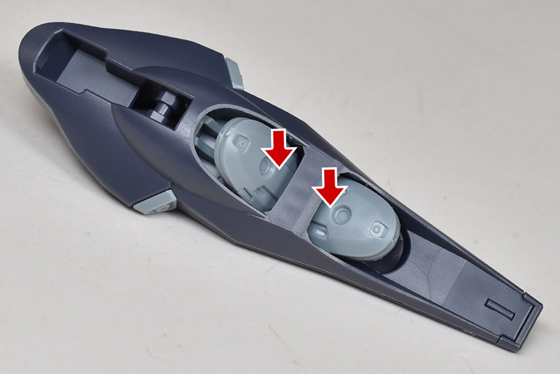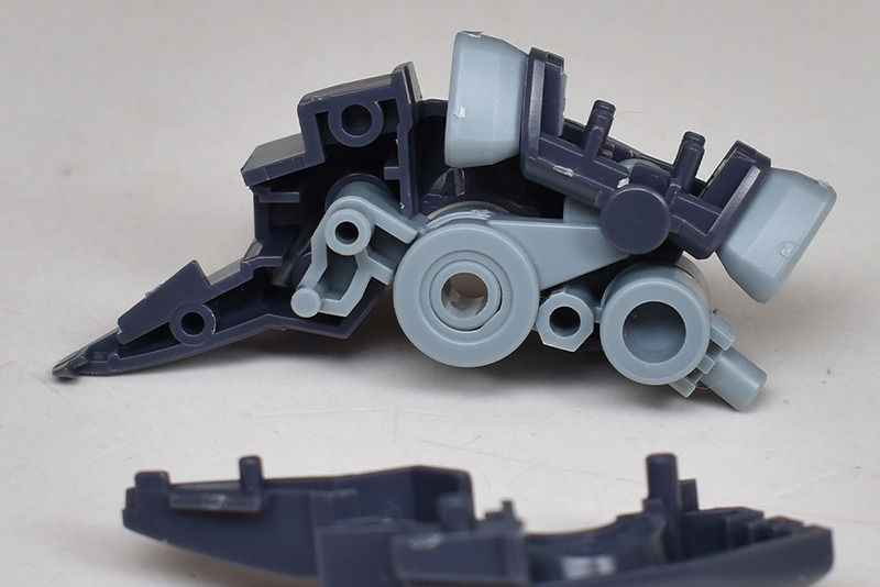 バックブースター基部には可動ギミックがあり、内部の造りも緻密。左右の組み合わせですが、合わせ目が露出しない構造になっています。