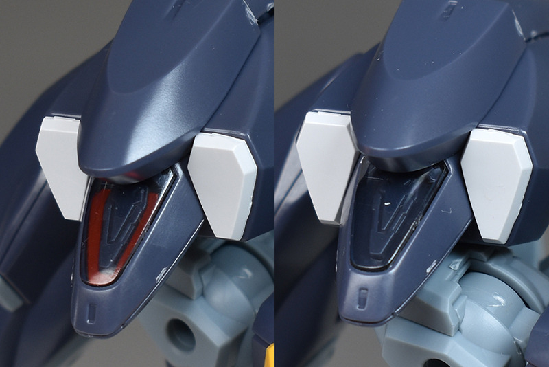 各部のシェルユニットを非発光状態にしていきます。頭部のシェルユニットはパーツで色分けされているため、非発光を再現する場合はシールを貼り付けて色味を統一します。
