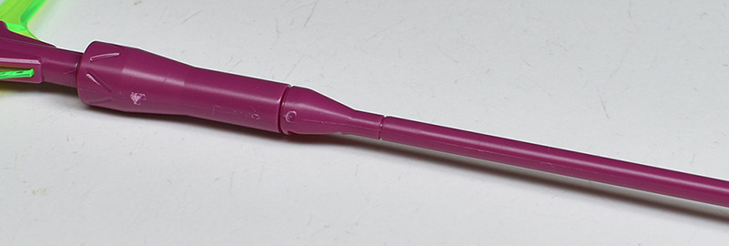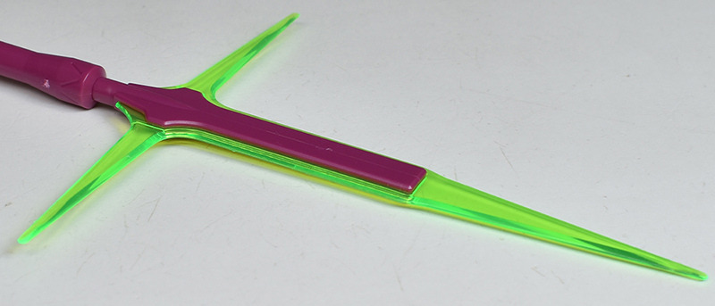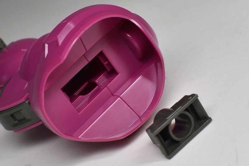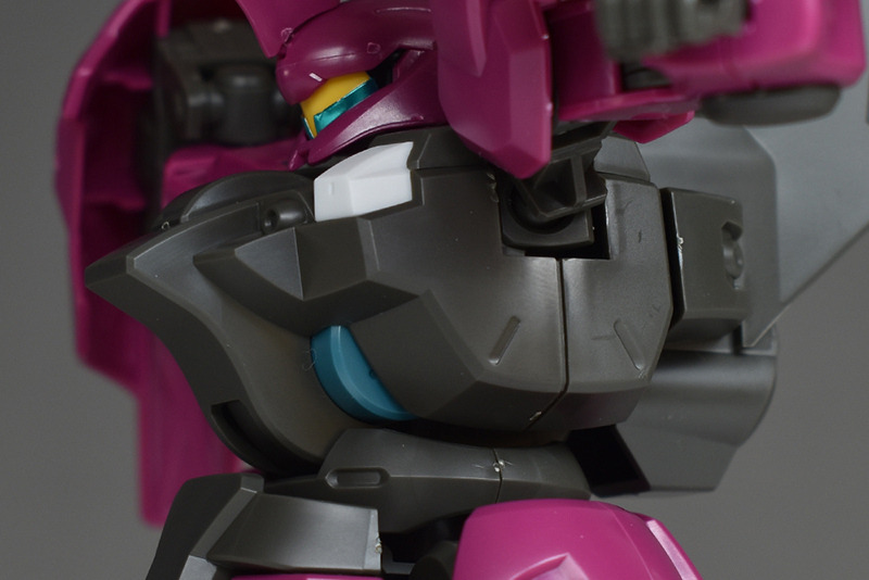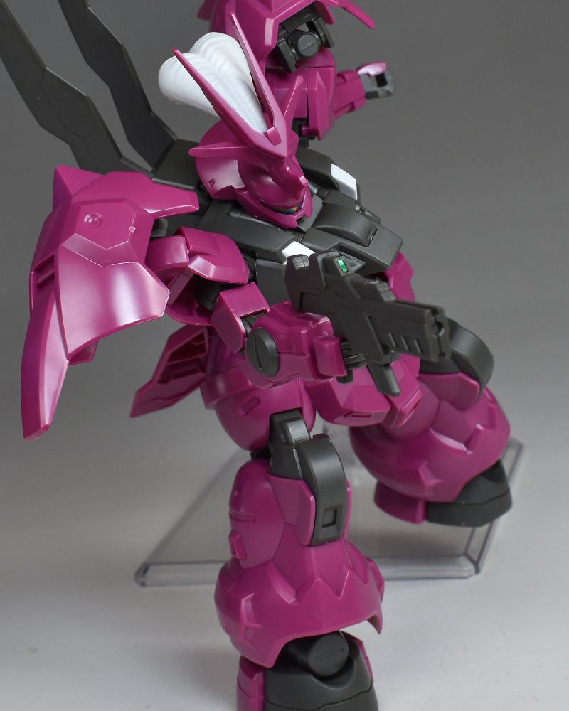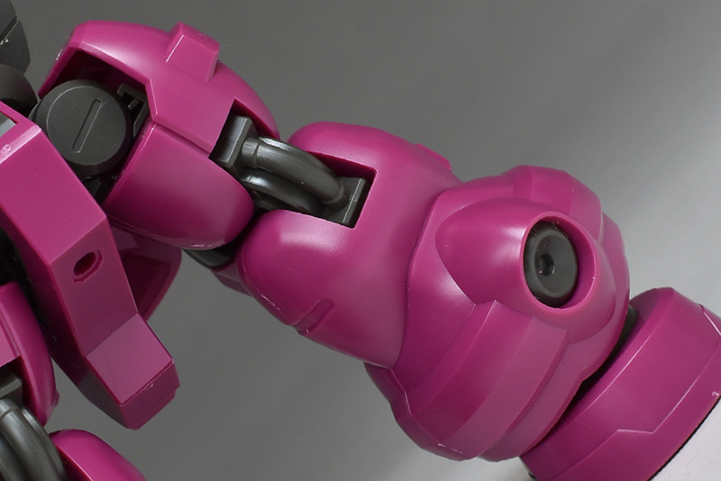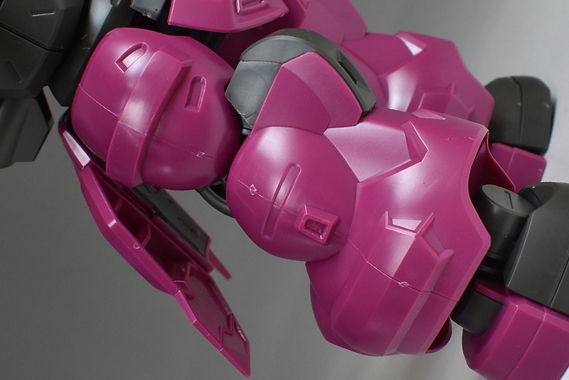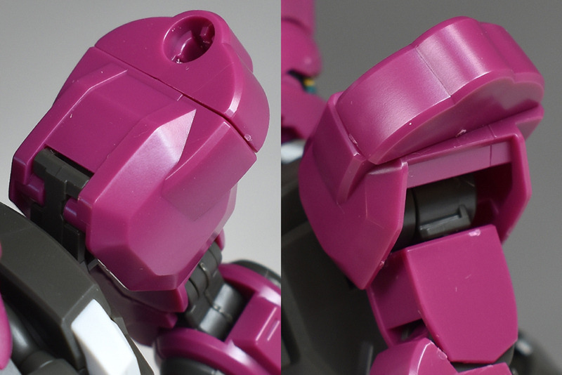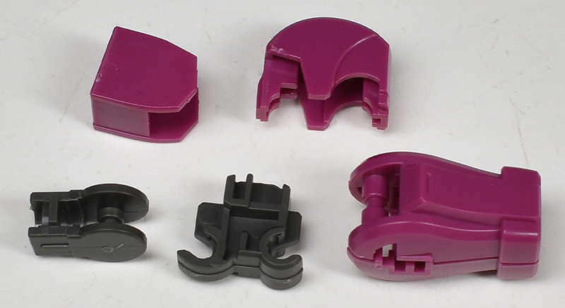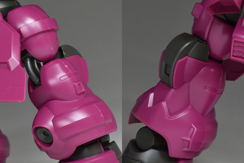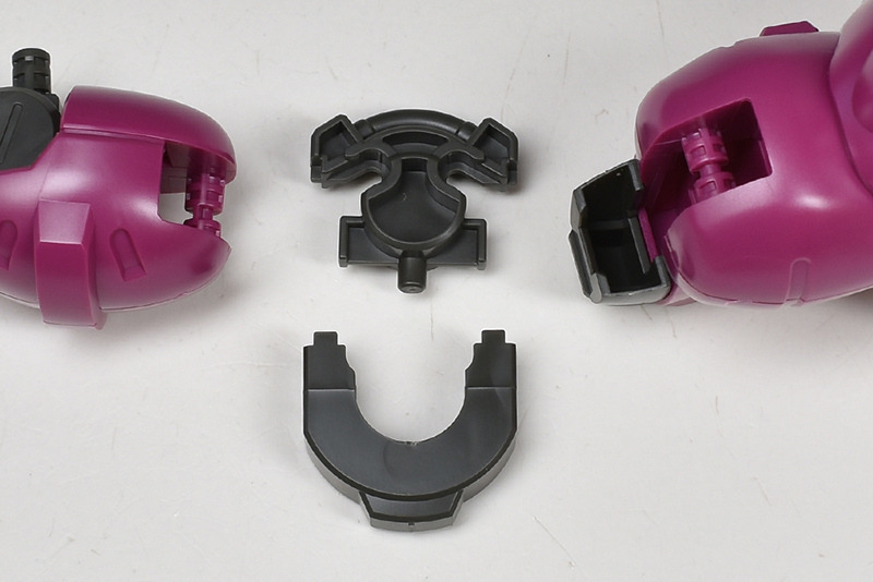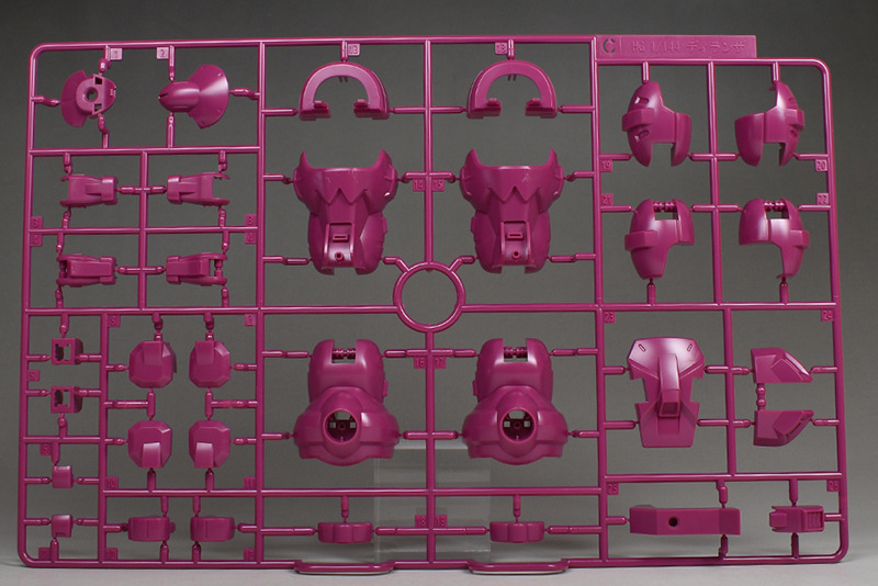 The molding color is magenta (wine red) with white for the blade antenna feathers and part of the chest armor, and blue-green for the abdominal armor, verniers, etc. Dark gray molded KPS is used for other joints and internal parts.