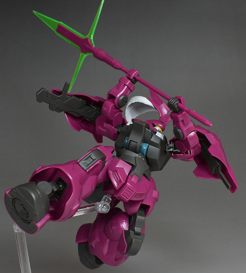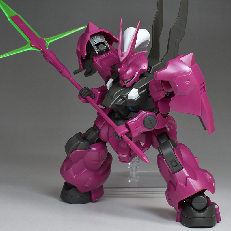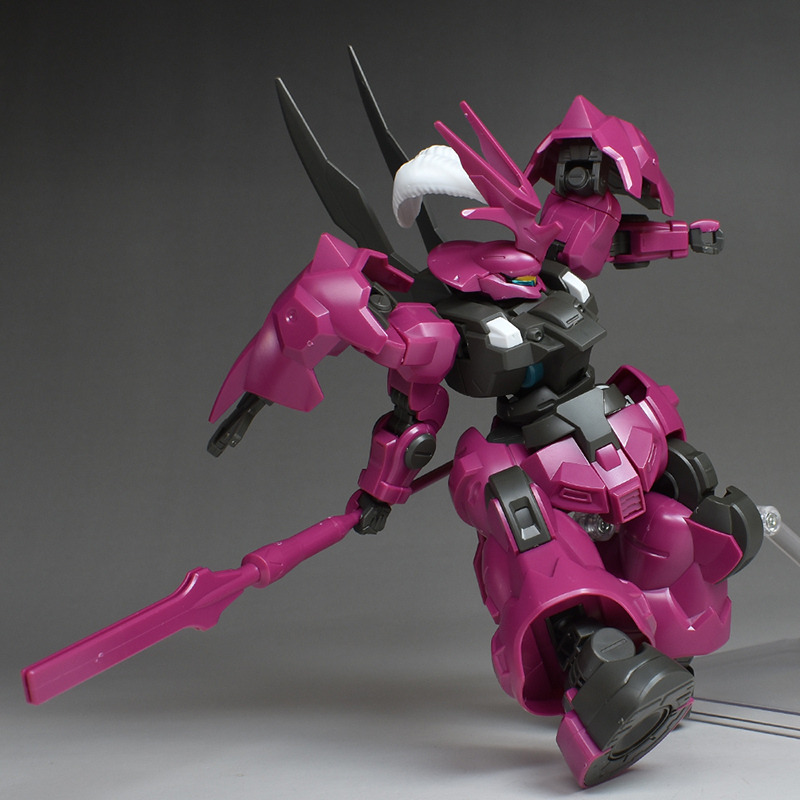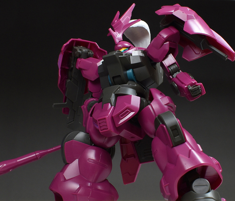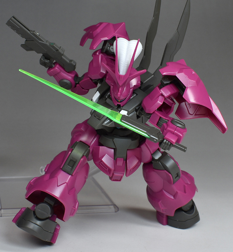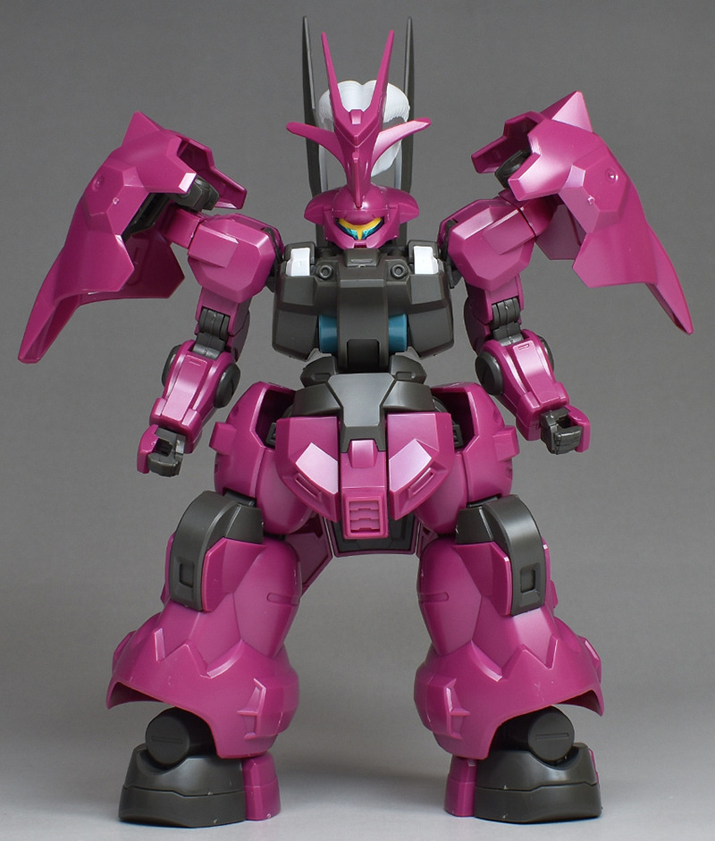 The MS “Dilanza” developed by Jetark has been tuned for the heir “Guell Jetark” to become the “Dilanza (Guell’s Custom)” in HG kit form. Its magenta-based coloring, massive proportions, and distinctive feathered blade antenna are all recreated.