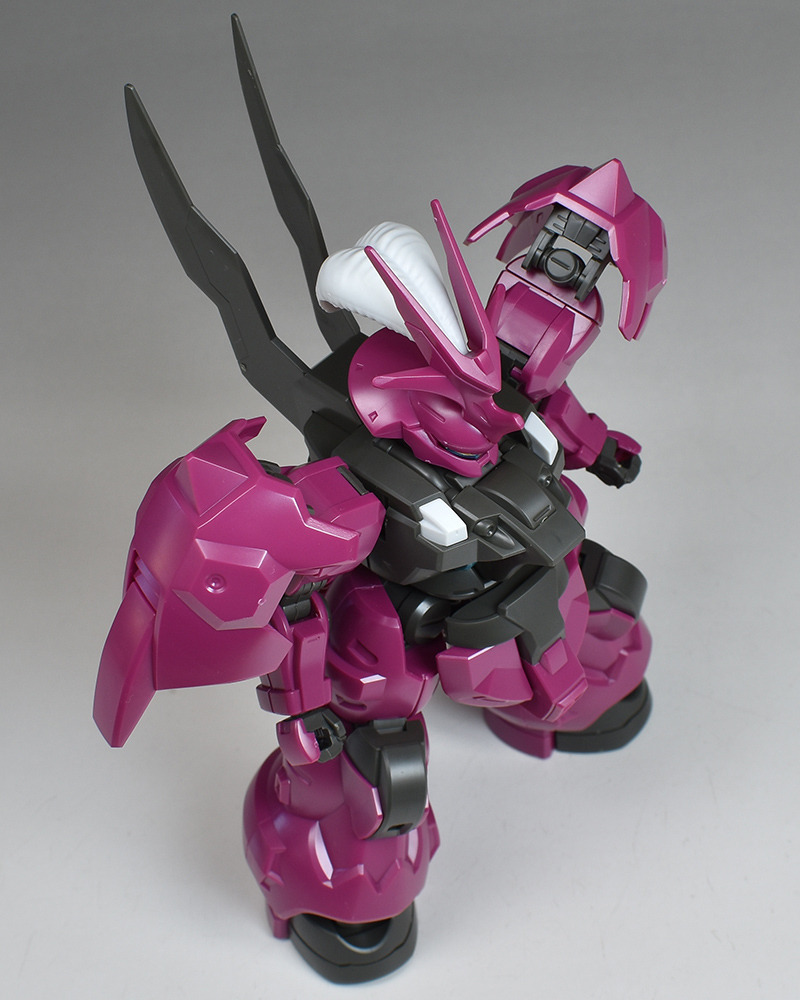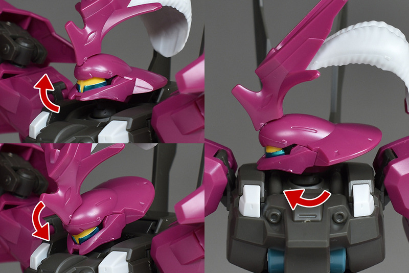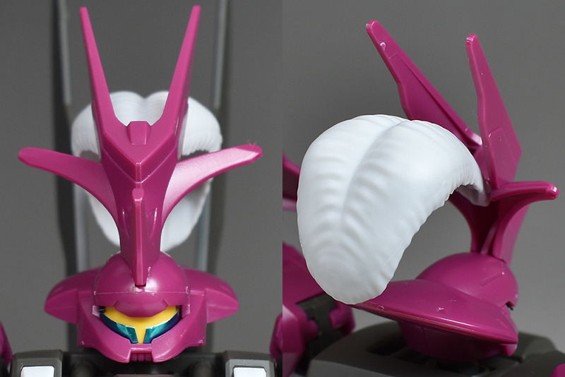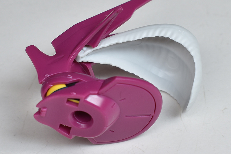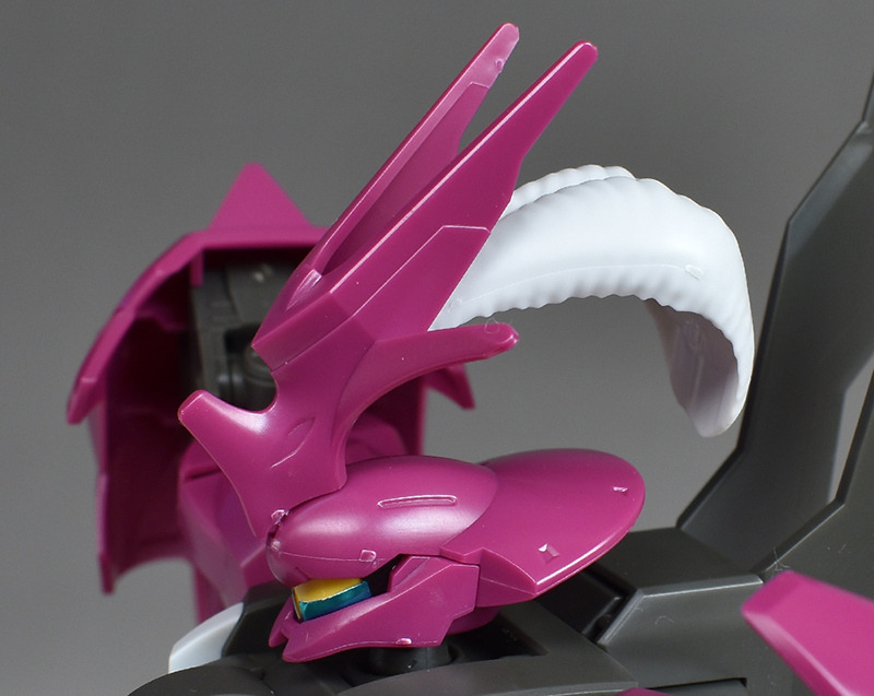 The head is impressive with its insect-like rounded armor and the six-pronged, tough blade antenna on the forehead. The blade antenna was aerial cut off during the duel, but the white feather ornament on the rear is also reproduced. The feather ornament is also molded to express a fluffy feel. There is no folding gimmick when storing it in a container.
